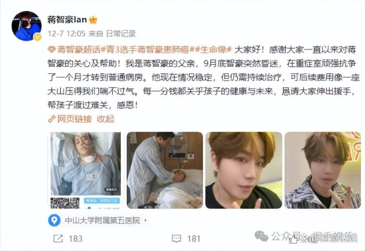 蒋智豪的抗癌之路还在继续,而他能否战胜病魔,重新回到大家的视野中,依然是一个未知数。